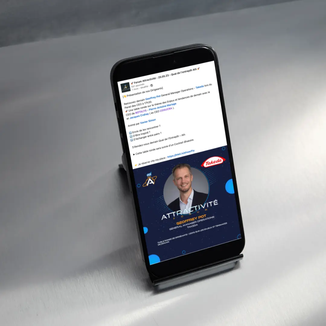 La Chambre de commerce est venu nous voir afin de mettre sur pieds le plus grand Forum de Wallonie Picarde dédié à l’attractivité. Nous sommes parti d’une page blanche afin de créer un univers de marque impactant et un évènement générateur de sens. Nos équipes se sont chargés (en partenariat avec Connexion & Sensa Agency), de l’entièreté de la stratégie marketing, du naming à la gestion de projet.