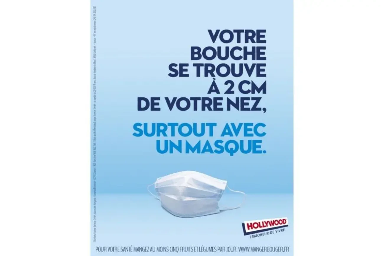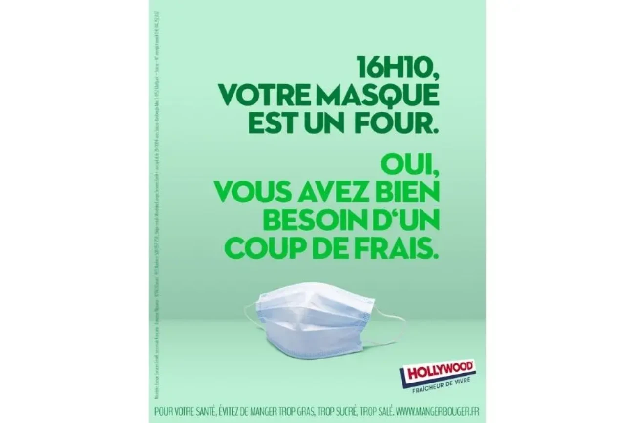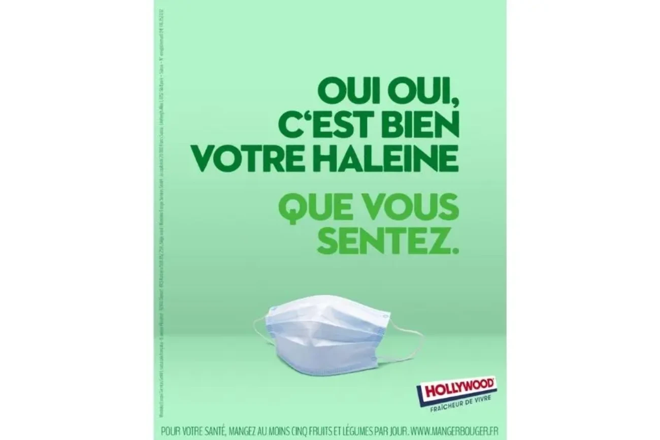 Octobre 2020, Hollywood Chewing-Gum réalise avec l’aide de l’agence Marcel une campagne qui a fait parler d’elle. Dans un contexte de pandémie emplie de pessimisme, les ventes de chewing-gum se portent mal. La raison ? L’utilisation des masques est de plus en plus fréquente.